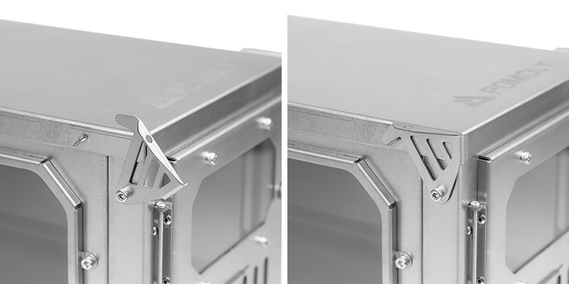 La plaque renforcée évidée en trois dimensions minimise la déformation du capot supérieur.