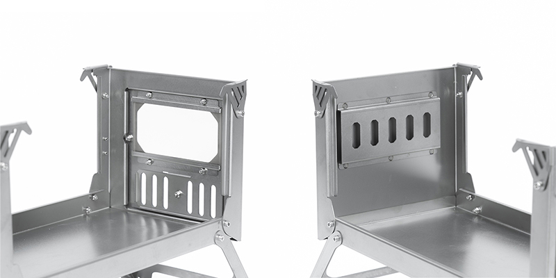 Le bord de la porte était plié à 90 degrés et plié à 360 degrés. Le bord à 90 degrés peut renforcer la structure du cadre de la porte et le pliage à 360 degrés peut maintenir le cadre de la porte à plat avec le bas du poêle.